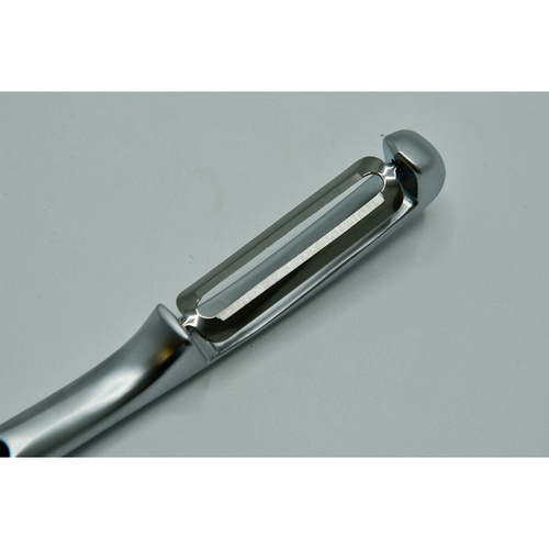 پوست کن قلمی استیل شنگیا از محصولات بی نظیر و کاربردی در هر آشپزخانه ای می باشد. بهترین وسیله برای جایگزین کردن چاقو های خطرناک می باشد. جنس تیغه و دسته این محصول از استیل ضد زنگ می باشد. دسته استیل این محصول باعث شده تا عمر بالاتری داشته باشد و در حین استفاده و فشار شکسته نشود. از این محصول می توانید برای تهیه شکلات رنده شده نیز استفاده نمایید. به دلیل طراحی زیبا و باریک این محصول به راحتی و آسانی می توانید از آن نگهداری کنید. استفاده از این پوست کن باعث می شود تا در زمان آشپزی صرفه جویی نمایید. با این محصول سرعت خود را بالا ببرید و همچنین پوست مواد غذایی مانند سبزیجات، سیب زمینی، هویج، بادمجان و میوه ها را بصورت یکسان و نازک جدا نمایید. خطر استفاده از این محصول نسبت به چاقوها تیز بسیار کمتر است. این محصول به دلیل استیل بودن در برابر ضربه و افتادن بسیار مقاوم است و اتفاقی نمی افتد.به راحتی می توانید این محصول را بشویید و همچنین می توانید برای شستن این محصول از ماشین ظرفشویی استفاده نمایید.