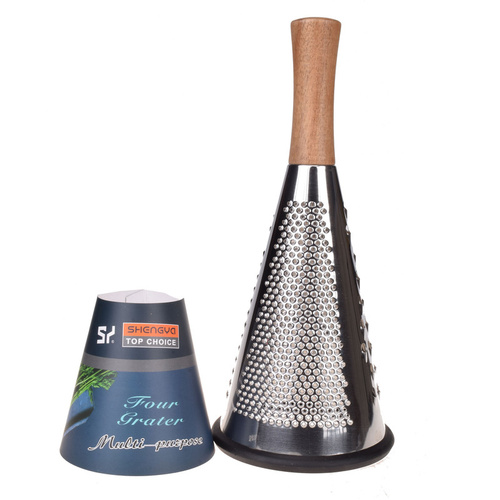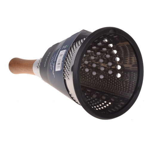 رنده مخروطی دسته چوبی برای رنده کردن میوه و پیاز و سیر مناسب است. بدنه ی اصلی این محصول از جنس استیل و دسته ی آن از چوب است. این محصول از تولیدات برند معتبر فلاور است بنابراین کیفیت و دوام بالایی دارد. خوش دست است و در هنگام انجام کار دست شما را خسته نمی کند.
