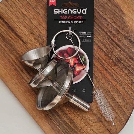 این ست قیف 3 عددی از برند شنگیا ساخته شده و همراهش یک فرچه مخصوص تمیز کردن لولههای قیف داره تا بعد از استفاده به راحتی شسته و تمیز بشه. جنس قیفها استیل مقاوم با رنگ ثابته و برای ریختن انواع مایعات داخل بطریها و ظروف مختلف بسیار کاربردیه.