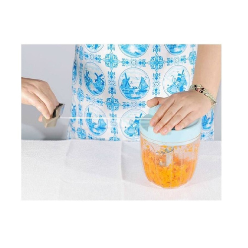 همیشه برای خرد کردن سبزیجات، هویج، پیاز، میوهها و دیگر مواد غذایی، داشتن یک وسیله که بتواند عمل خرد کردن آسان را انجام دهد، به شما کمک میکند غذای خود را سریعتر و با کیفیت بیشتری طبخ کنید. یکی از این دستگاهها، خردکن و همزن دستی است که یک نمونهی جالب آن را در تصویر میبینید. این دستگاه دارای یک تیغهی پنج پر و بسیار تیز است که روی محور خود به چرخش درمیآید. چیزی که این دستگاه را از دیگر محصولات متمایز میکند، مکانیزم چرخش آن است. به این صورت که روی درِ خردکن یک دستهی پلاستیکی وجود دارد که به یک ریسمان بسیار محکم متصل است. با کشیدن این دسته میبینید که تیغه یا همزن به چرخش درمیآید و بسته به سرعت کشیدن ریسمان، سرعت چرخش کم و زیاد میشود. ریسمان آن تا 40 سانتیمتر به بیرون میآید. امکان پاره شدن آن به هیچ وجه وجود ندارد و حتی اگر روی بدنه ساییده شود، باعث خورده شدن بدنهی پلاستیکی آن میشود. تیغههای این محصول بسیار تیز هستند و حتی با پرکردن کاسه از سبزیجات و... کند نمیشوند یا گیر نمیکنند. از طرف دیگر سیستم چرخشی آن که حالت کشیدن نخ با دسته را دارد، باعث خردشدن یا هم خوردن سریعتر شده و دست کمتر خسته میشود. زیر کاسهی این محصول، یک نوار لاستیکی قرار گرفته است که باعث چسبندگی آن به زمین و سر نخوردن آن میشود؛ بنابراین میتوانید با یک دست به آرامی خردکن را نگه داشته و با دست دیگر نخ را بکشید؛ بدون آنکه کاسه تکان بخورد. نکتهی بسیار مهم دیگر این است که لبههای تیغهها رو به بالا هستند و باعث میشوند مواد درون خردکن به بالا پرتاب شده و تیغههای ردیف بالایی بدون استفاده نباشند. میتوان به جرئت گفت که تیغههای این محصول اصلا کند نمیشوند و میتوانند چند سال با کیفیت اولیه کار کنند.